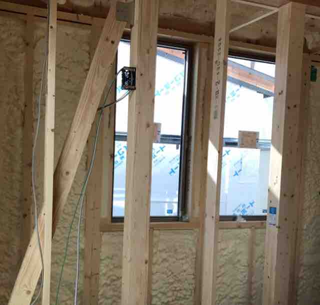 手が届く所にお隣さんの壁の防水シートが見えます。