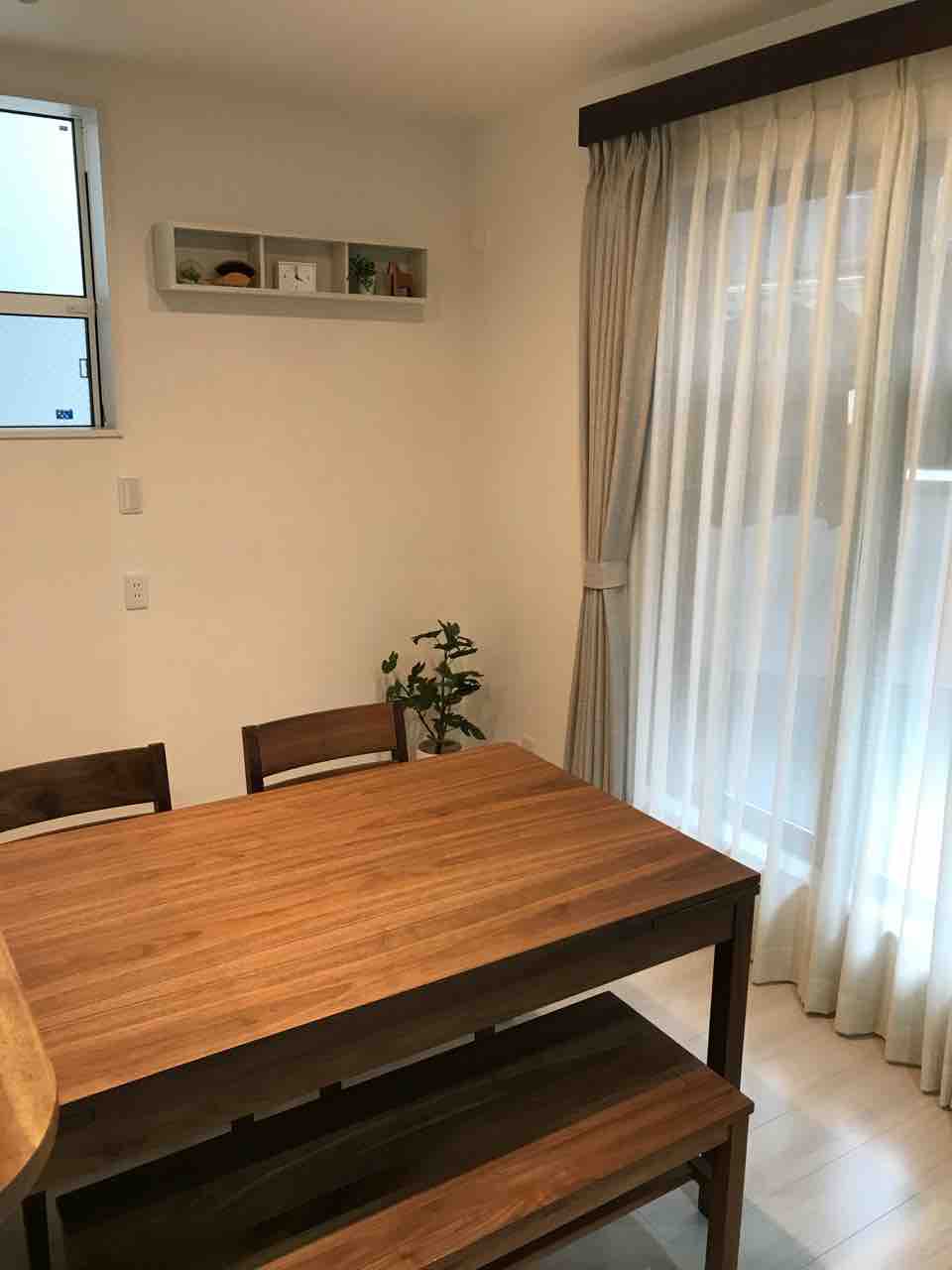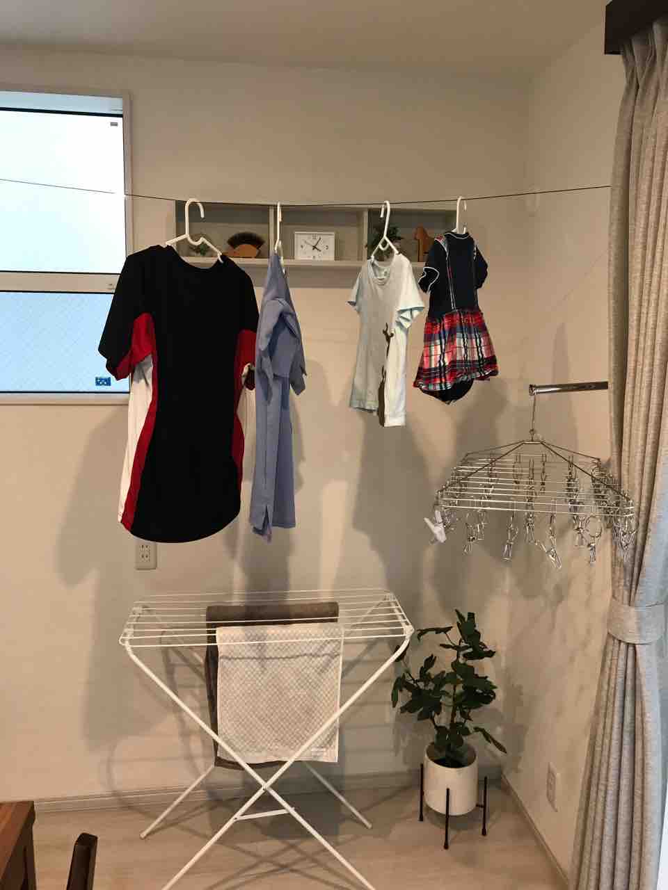 ダイニングの奥を室内干しスペースにしたおかげで、導線の邪魔にもならずに満足してます😊