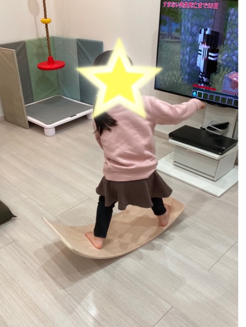 バランスボードの上に乗ってブランコしたり、滑り台したり、フラミンゴしたり♡